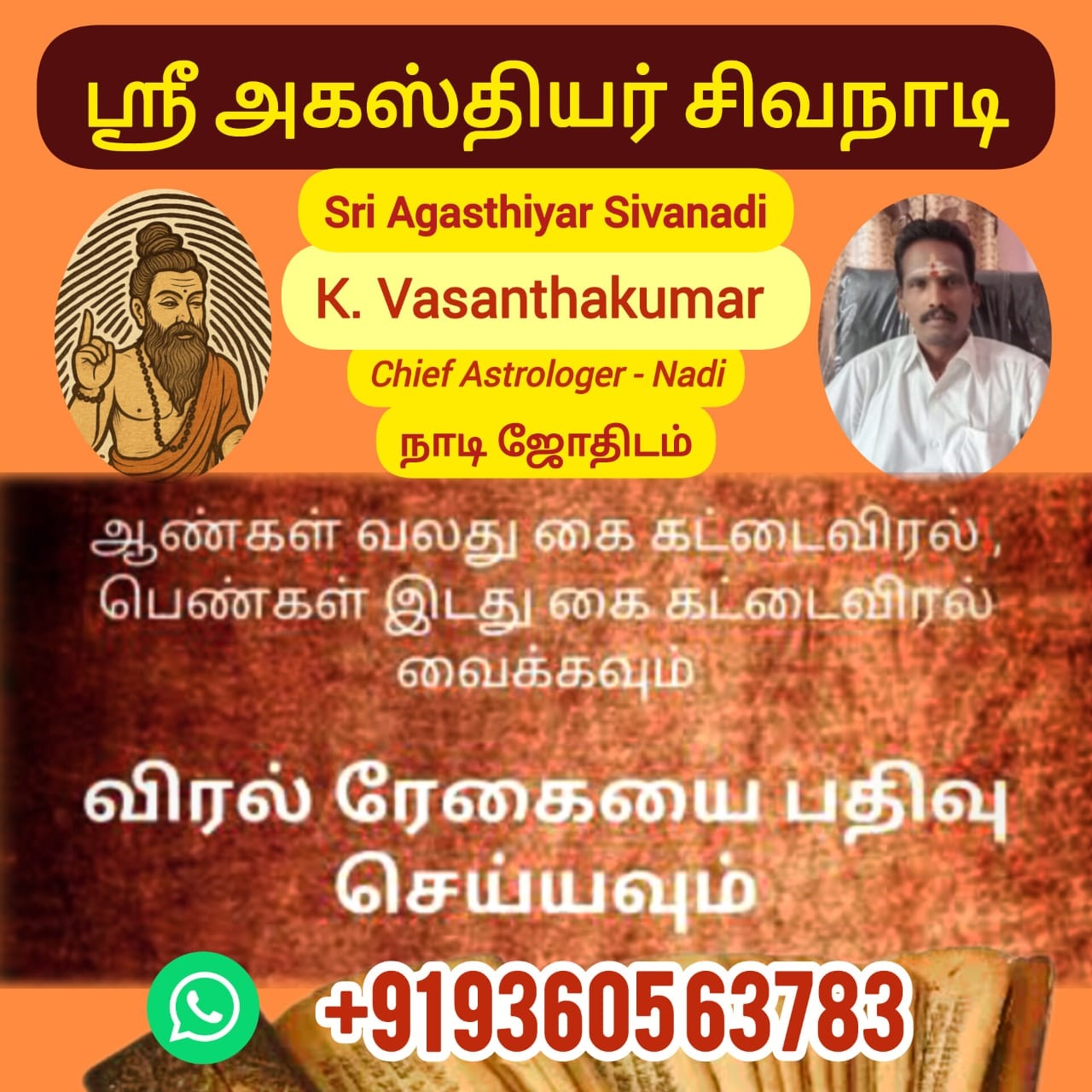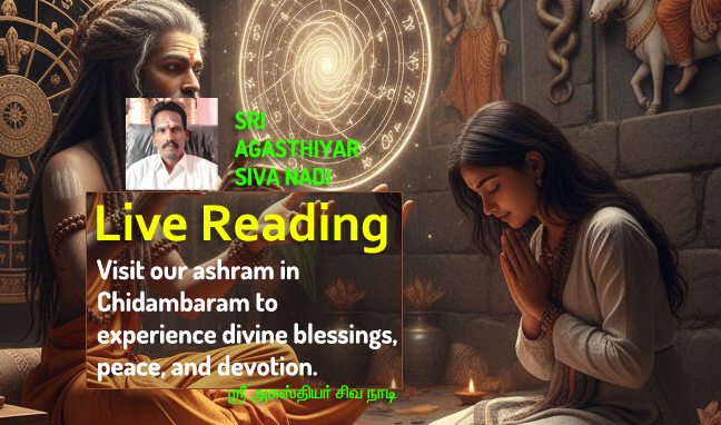 At the Sri Agasthiyar Siva Nadi Astrology accommodate in Valluvar Street, Thaiyakuppam Main Road, Keezhamoongiladi, Chidambaram. Guru ji. K. Vasanthakumar, a third-generation Nadi astrologer with over 45 years of experience, guides seekers with devotion and authenticity. His readings not only provide clarity but also inspire spiritual transformation.
